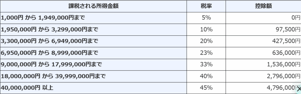 所得税の税率表がこちら